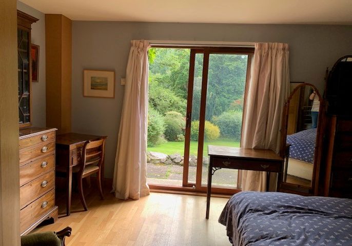 This room would particularly suit an artist or writer or somebody doing research, or just working from home, or somebody interested in nature It is very peaceful and quiet. There is a large and beautiful garden, bordering woodland with a river running through it.